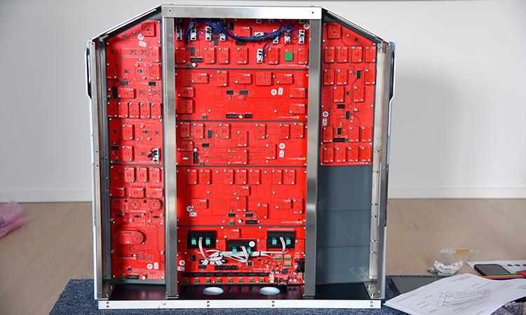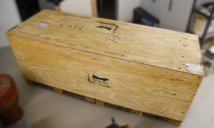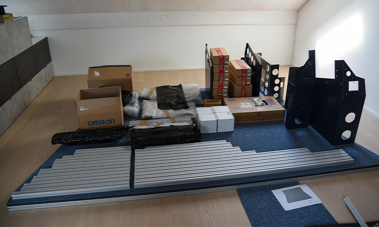Die Verpackung war einmal mehr sehr durchdacht ausgeführt, sodass eigentlich wirklich nichts kaputtgehen konnte. Die langen Aluprofile des Frames wurden auch gleich zur Stabilisierung der Verbindung der zwei Paletten genutzt.