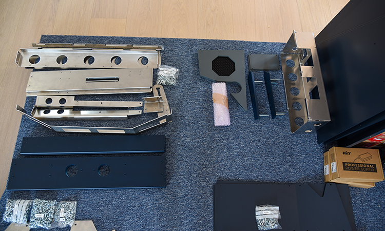Ende Juni war es soweit und die Doppel-Europalette von Vier im Pott wurde geliefert. Bestellt habe ich den Shell Frame in der Grösse M aus Aluprofilen mit den dazugehörigen Verbindern, das Front Overhead inkl. Panels und die komplette MIP-Struktur inkl. Panels und Monitore. Schon das Auspacken war ein Erlebnis – man freut sich ja schliesslich monatelang auf eine solche Lieferung.