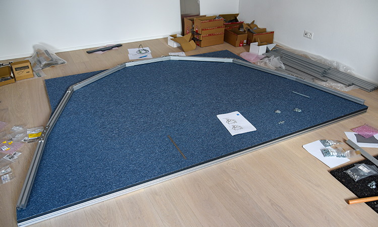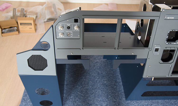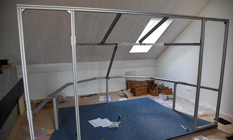 Der Aufbau startete logischerweise mit dem Frame. Dieser lässt sich mit der elektronisch mitgelieferten Aufbauanleitung relativ einfach montieren. Allerdings muss man auf jeden Fall zu Zweit sein – macht dann mehr Spass. Am Ende hat alles perfekt zusammengepasst und konnte auf den vorbereiteten Cockpitboden montiert werden.