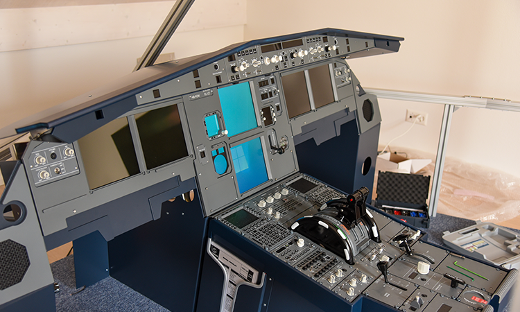 Im Anschluss kümmerte ich mich um den Aufbau des Main Instrument Panels. Die grösste Herausforderung hierbei ist die Montage und Ausrichtung der Monitore. Zwei zusätzliche Hände sind hier ganz klar von Vorteil, da die Monitore nur ganz wenig grösser sind als die Aussparungen in den Panels. Schliesslich war aber auch das geschafft und als letzter Schritt wurde das Glareshield mit den entprechenden Panels aus der Skalarki Desktop Line bestückt und abschliessend auf das MIP aufgesetzt.